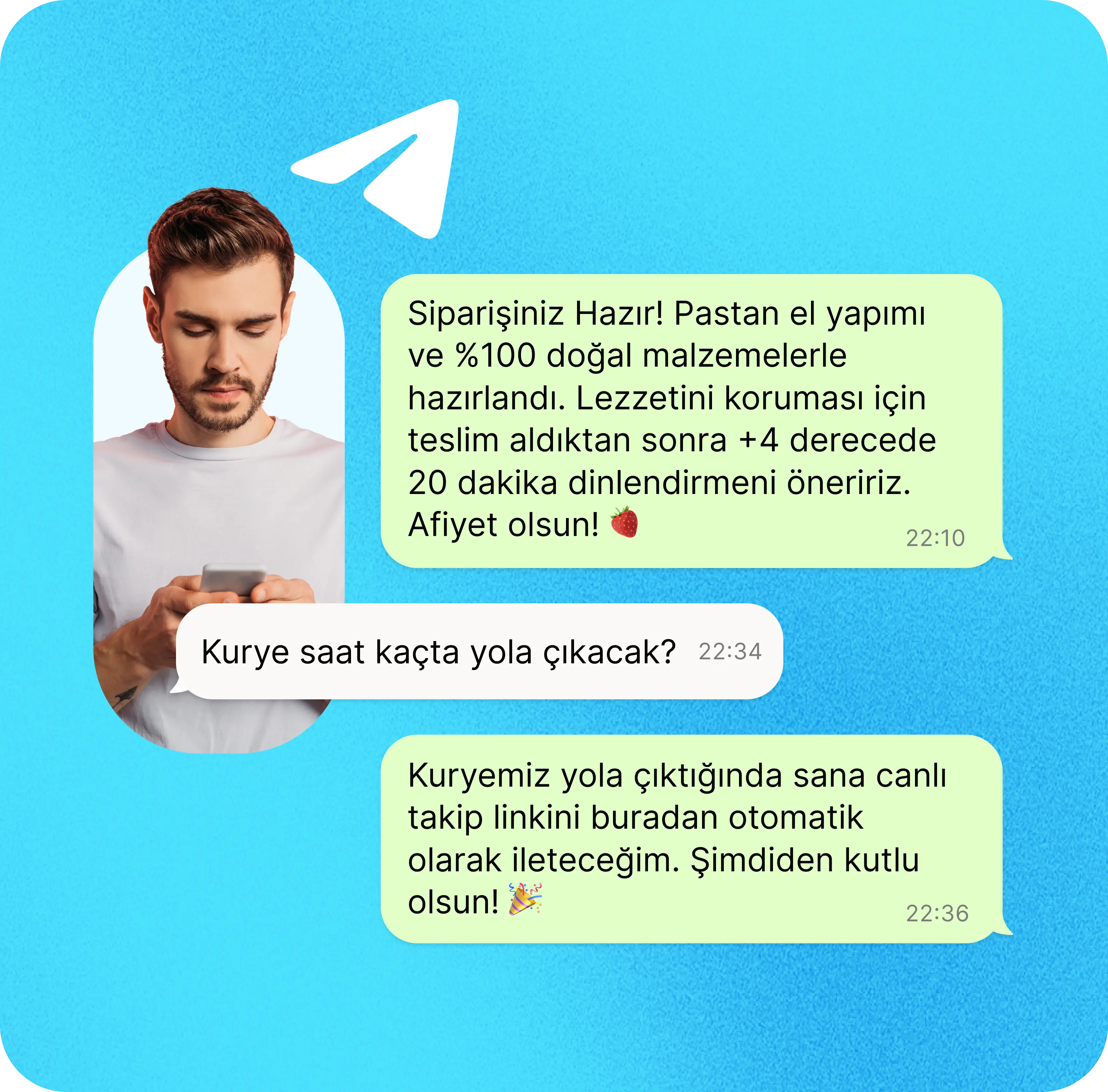 Diğer her kanalda olduğu gibi markanızın hangi iletişimi kanalı kullandığı farketmez. Connexease ile Telegram'dan da müşterilerinize ulaşabilirsiniz.
